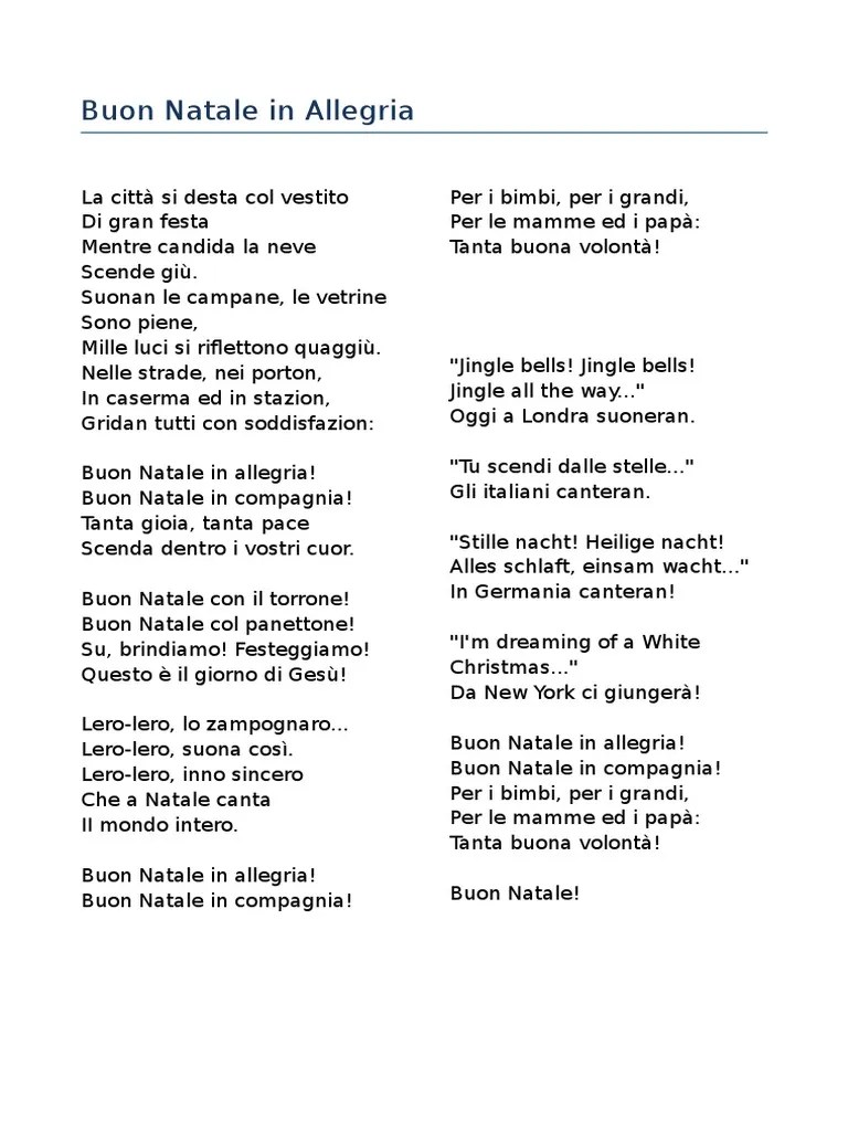 10.10.2020 · lyrics for buon natale in allegria by piccolo coro dell'antoniano. Suonan le campane, le vetrine sono piene, mille luci si riflettono quaggiù. Piccolo coro dell'antoniano buon natale in allegria. 10.10.2020 · lyrics for buon natale in allegria by piccolo coro dell'antoniano. La città si desta col vestito di gran festa mentre candida la neve scende giù. Questo video riguarda il mio filmato. Questo video riguarda il mio filmato